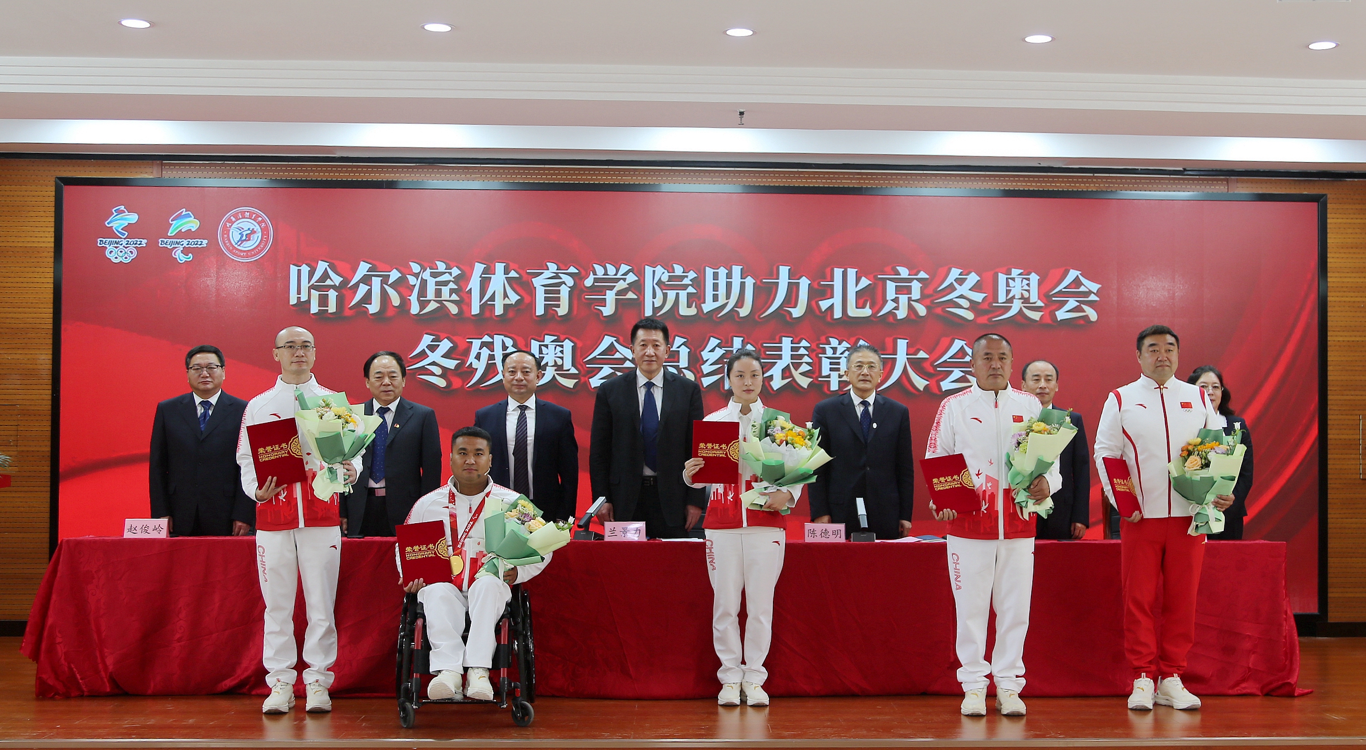 会上,党委副书记、校长陈德明同志发表讲话。他表示,在北京冬奥会、冬残奥会上,哈体人以最好水平、最高标准、最严要求完成了助力冬奥会、冬残奥会的神圣使命,为龙江赢得了荣誉,为学校增添了无上荣光。他代表学校,向获得表彰的各位老师表示热烈的祝贺!向为冬奥会、冬残奥会无私奉献的所有哈体人表示衷心的感谢!