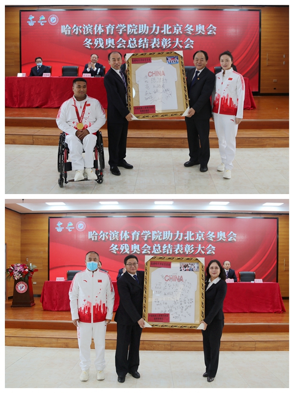 他指出,举办北京冬奥会、冬残奥会是以习近平同志为核心的党中央作出的重大决策,是我国重要历史节点的重大标志性活动。在习近平总书记亲自谋划、亲自部署和亲自推动下,我国秉承“绿色、共享、开放、廉洁”的办奥理念和“简约、安全、精彩”的办赛要求,在世纪疫情与百年变局交织叠加的艰难时刻,向世界奉献了简约、安全、精彩的北京冬奥会、冬残奥会,兑现了“两个奥运”同样精彩的庄严承诺,彰显了奥林匹克精神和中华体育精神。在北京冬奥会、冬残奥会筹办过程中,我校认真贯彻落实习近平总书记重要指示精神和省委、省政府“实现三个40%”的目标要求,把服务保障备战作为重大政治任务,坚持“北京冬奥需要什么、我们就支持什么,北京冬奥需要我们做什么、我们就做好什么”,做到了举全校之力支持、服务、奉献、参与冬奥。我校有96名师生助力服务冬奥,向党和国家交出了冬奥会3金2铜,冬残奥会12金6银10铜的优异答卷,人才贡献率居全国体育院校之首,成为唯一一所荣获“突出贡献集体”荣誉称号的高校,教练员朱德文被授予“北京冬奥会、冬残奥会突出贡献个人”称号。这些成绩的取得,全面彰显了具有66年办学历史的哈体院在人才培养、竞赛训练、科技助力、场馆保障等方面的精湛水平,充分证明了哈体院作为冰雪体育强校在冰雪体育研究和冰雪运动实践方面的雄厚实力。我们哈体人应该为此骄傲和自豪!