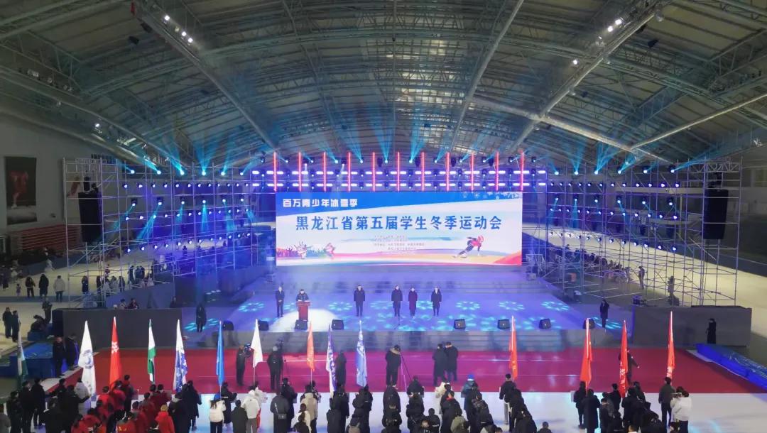 黑龙江省教育厅主办、哈尔滨体育学院承办的黑龙江省第五届学生冬季运动于1月15日大庆市奥体中心速滑馆拉开帷幕。本届学生冬季运动会共设速度滑冰、短道速滑、冰壶、冰球、高山滑雪、单板滑雪、花样滑冰七大项目,含高校甲组、高校乙组,高中甲组、高中乙组,初中组、小学组等六个组别,相关比赛项目将分别在大庆市、伊春市、绥化市及哈尔滨体育学院部分场馆进行。