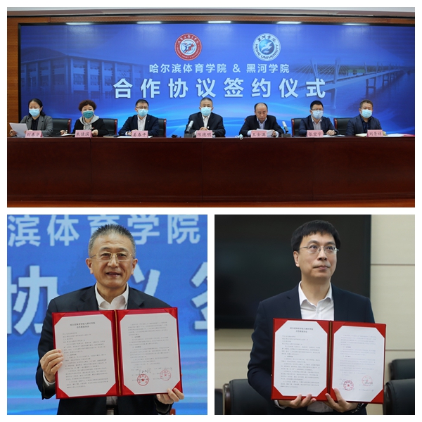 陈德明校长谈到,我校作为国家冰雪体育人才培养的主阵地,一直秉承“打冰雪牌、走特色路”的办学发展理念,重点介绍了我校师生在服务2022年北京冬奥会、冬残奥会上所作出的突出贡献和收获的可喜成绩,并表示将以签署合作协议为契机,进一步发挥自身优势,创新合作机制,努力搭建优势互补、互利共赢、务实高效的校际合作平台,期待更加全面和深入的合作。杨敬民校长介绍了黑河学院对俄合作交流情况,表示非常荣幸能够参与本次签约仪式,希望双方能够在对俄留学项目、冰雪体育人才培养、举办中俄高水平体育赛事和体育交流活动等方面建立广泛密切的合作。