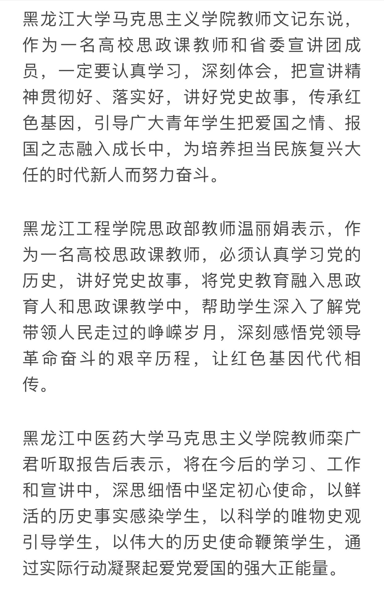 龙江高校干部师生热议党史学习教育中央宣讲团宣讲报告会