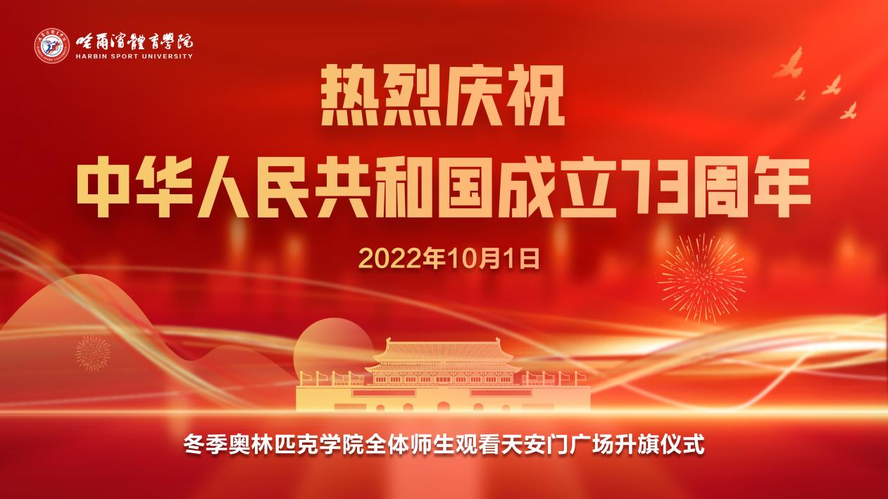 为庆祝中华人民共和国成立73周年,激发全院师生爱国主义情怀,进一步发挥思想引领作用,提升凝聚力和向心力,冬季奥林匹克学院全体师生于2022年10月1日早6时10分在学校滑冰馆观看北京天安门广场升旗仪式的直播。哈尔滨体育学院学生工作部部长张海滨、冬季奥林匹克学院党总支书记李晓东、党总支副书记曲爽、副院长穆亮及学院全体师生出席本次活动,活动由辅导员刘宣池主持。