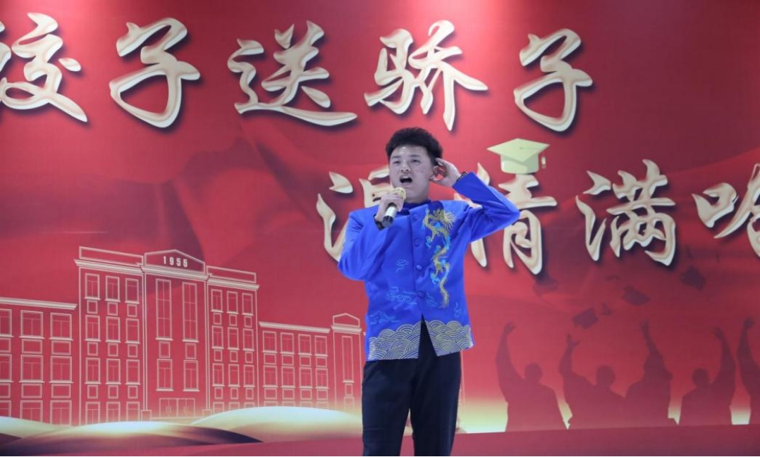 毕业班辅导员赵云朋与毕业生代表共同演唱《再见》,表达出“虽然离别就在眼前,但是怀念却是永远”的不舍深情。
