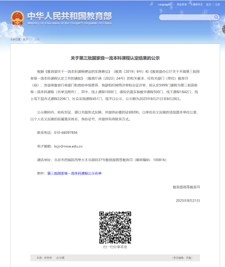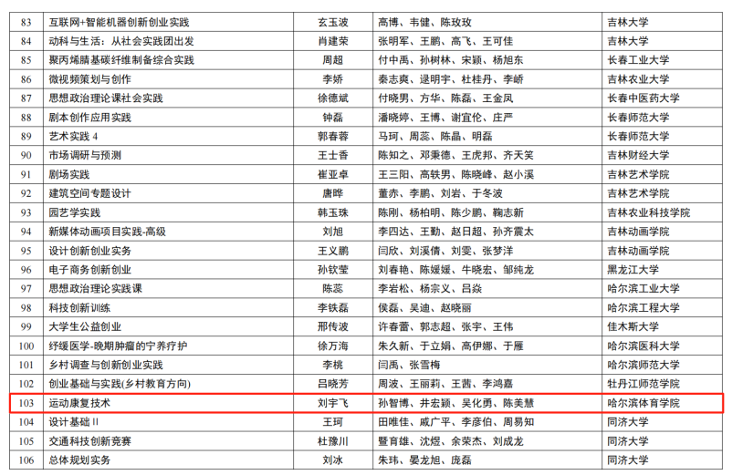 8月21日,教育部公示第三批国家级一流本科课程名单,我省共认定189门,其中,线上课程48门,虚拟仿真实验教学课程7门,线下课程47门,线上线下混合式课程79门,社会实践课程8门。我校刘宇飞教授团队主讲的《运动康复技术》课程成功入选社会实践赛道国家级一流本科课程。