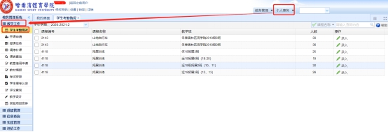 2、打开个人事务——教学工作——学生考勤情况。系统会显示本学期所有的开课任务。如图1