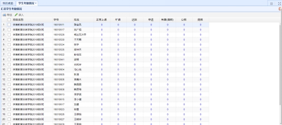 8、关掉图7、图5的界面,返回到图3的界面,系统会对学生考勤情况进行了统计汇总。图下图图8.